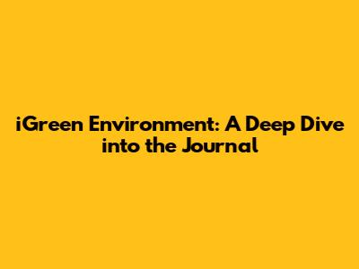 IGreen Environment: A Deep Dive Into The Journal