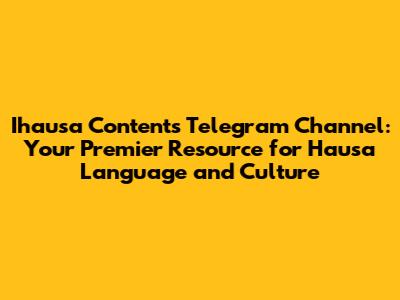 Ihausa Contents Telegram Channel: Your Go-To Resource