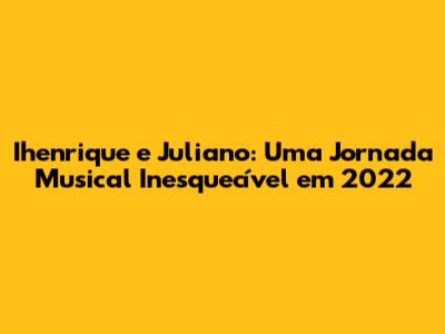 A energia e a conexão com o público são características marcantes dos shows de Ihenrique e Juliano. A dupla demonstra um carinho especial pelos fãs, interagindo com eles durante as apresentações e demonstrando gratidão pelo apoio recebido. Essa proximidade com o público cria um ambiente de festa e celebração, onde todos se sentem parte de uma grande família. Os shows de Ihenrique e Juliano são uma oportunidade para os fãs se divertirem, cantarem junto com seus ídolos e criarem memórias inesquecíveis. A dupla sabe como transformar cada apresentação em um evento especial, com momentos de emoção, alegria e muita música boa. Os shows de 2022 foram um sucesso, com grande participação do público e reconhecimento da crítica especializada. A dedicação e o profissionalismo de Ihenrique e Juliano no palco são um exemplo para outros artistas e um presente para os seus fãs.