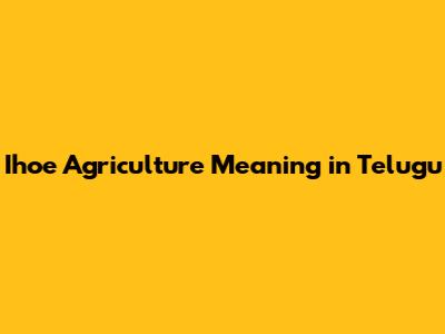 Ihoe Agriculture: Meaning And Uses In Telugu