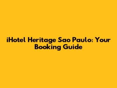 Let's dive into everything you need to know about booking your stay at the iHotel Heritage in Sao Paulo. This guide is designed to make your booking process smooth and easy, ensuring you get the best experience possible. We'll cover all the essentials, from finding the best deals to understanding the hotel's amenities and policies. So, if you're planning a trip to Sao Paulo and considering the iHotel Heritage, you're in the right place!