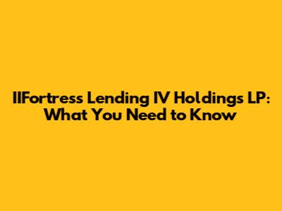 IIFortress Lending IV Holdings LP: What You Need To Know