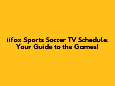 Iifox Sports Soccer TV Schedule: Your Guide To The Games!
