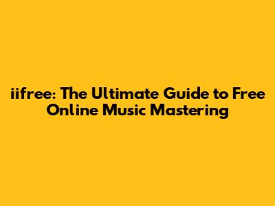Iifree: Master Your Music Online For Free!
