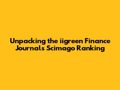 Hey finance enthusiasts and academic explorers! Today, we're diving deep into a topic that's crucial for anyone serious about academic publishing and understanding journal prestige: the iigreen Finance Journal Scimago ranking. For those new to the scene, Scimago Journal Rank (SJR) is a highly respected metric that evaluates the influence and prestige of academic journals. It's not just about the number of citations; SJR takes into account the quality of those citations, making it a more nuanced measure than some older metrics. So, when we talk about the iigreen Finance Journal and its position within the Scimago rankings, we're essentially looking at how well this journal is recognized and respected within the global academic community for its contributions to finance research. It's a key piece of information for authors deciding where to submit their work, for researchers looking for reliable sources, and for institutions evaluating research output. We'll break down what SJR means, how journals like iigreen are assessed, and what its ranking might signify for the journal's impact and reach. Let's get this financial fiesta started!