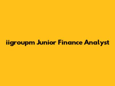 Iigroupm: Junior Finance Analyst Opportunity