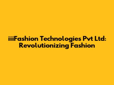 IiiFashion Technologies Pvt Ltd: Revolutionizing Fashion