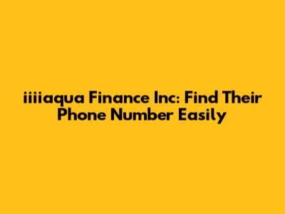Iiiiaqua Finance Inc: Find Their Phone Number Easily