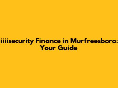 Iiiisecurity Finance In Murfreesboro: Your Guide