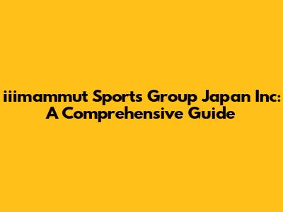 Iiimammut Sports Group Japan Inc: A Comprehensive Guide