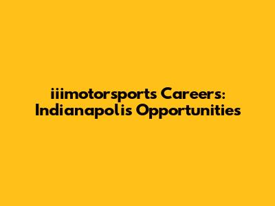 Iiimotorsports Careers: Indianapolis Opportunities
