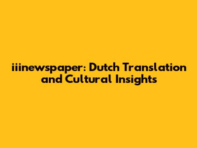 Iiinewspaper: Dutch Translation And Cultural Insights