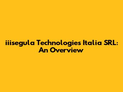 Let's dive into iiisegula Technologies Italia SRL, a company that's been making waves in the tech world. In this article, we'll explore what they do, their impact, and why they're worth knowing about. We'll break it down in a way that's easy to understand, so even if you're not a tech guru, you'll get the gist.