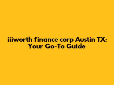 Iiiworth Finance Corp Austin TX: A Comprehensive Guide