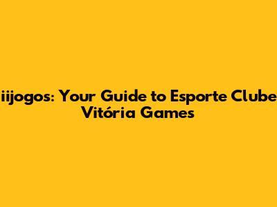 Iijogos: Your Guide To Esporte Clube Vitória Games
