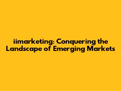 Iimarketing: Thriving In Emerging Markets