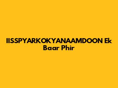 IISSPYARKOKYANAAMDOON: Ek Baar Phir (One More Time)