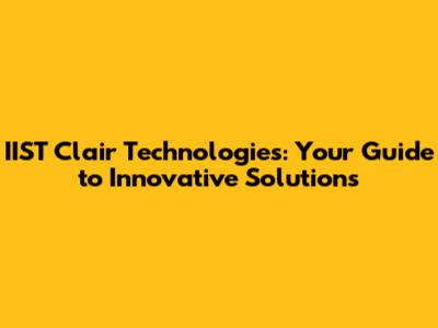 IIST Clair Technologies: Your Guide To Innovative Solutions