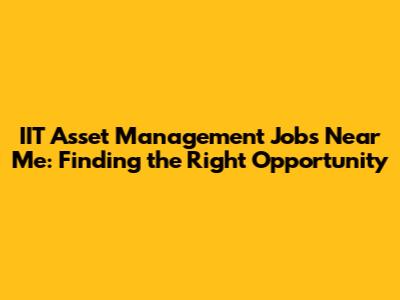 IIT Asset Management Jobs: Find Opportunities Near You