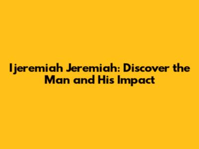 Ijeremiah Jeremiah: Discover The Man And His Impact