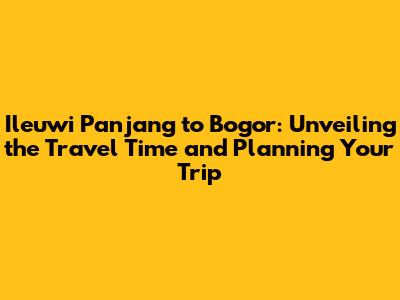 Ileuwi Panjang To Bogor: Travel Time & What You Need To Know