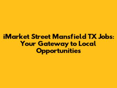 Hey there, job seekers! Are you on the hunt for iMarket Street Mansfield TX jobs? You've landed in the right spot! Finding a job can sometimes feel like navigating a maze, but don't worry, we're here to be your friendly guides. We'll explore everything you need to know about iMarket Street in Mansfield, Texas, and how to snag those awesome job opportunities. This article is your go-to resource for discovering the best ways to find employment, prepare your applications, and ace those interviews. We're going to dive deep into the world of iMarket Street, giving you the inside scoop on what makes it a great place to work and how you can become part of the team. So, buckle up, and let’s get started on your journey to a fantastic new career right here in Mansfield!