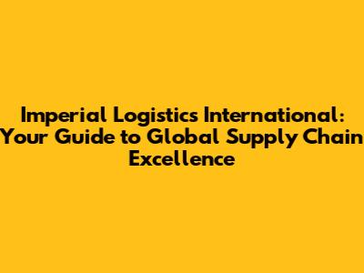 Imperial Logistics International: Your Guide To Global Supply Chain Excellence