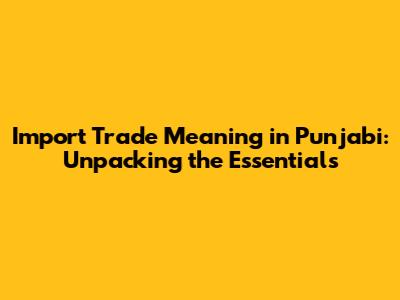 Import Trade In Punjabi: A Comprehensive Guide