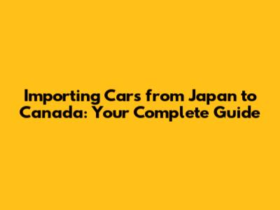 Importing Cars From Japan To Canada