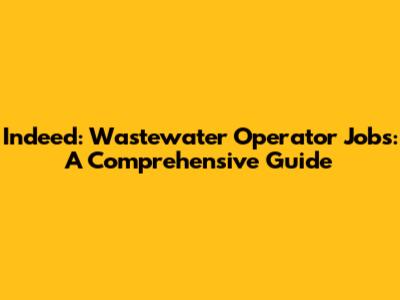 Indeed: Wastewater Operator Jobs And Career Insights