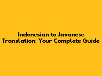 Indonesian To Javanese Translation: Your Complete Guide