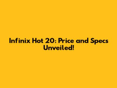 Infinix Hot 20: Price And Specs Unveiled!
