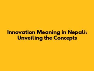 Innovation Meaning In Nepali: A Comprehensive Guide