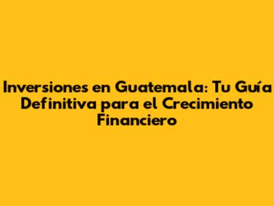 Inversiones En Guatemala: Guía Completa Para El Éxito Financiero