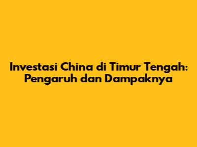 Semoga artikel ini memberikan pemahaman yang komprehensif tentang investasi China di Timur Tengah. Jika ada pertanyaan lebih lanjut, jangan ragu untuk bertanya ya!