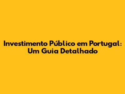 Investimento Público Em Portugal: Guia Completo E Atualizado