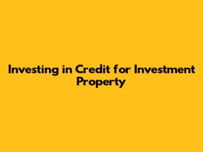 Investing In Credit For Investment Property