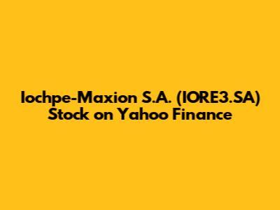 IORE3.SA: Iochpe-Maxion S.A. Stock On Yahoo Finance