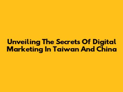 Unveiling The Secrets Of Digital Marketing In Taiwan And China