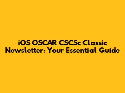 IOS OSCAR CSCSc Classic Newsletter: Your Essential Guide
