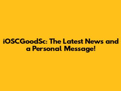 IOSCGoodSc: The Latest News And A Personal Message!