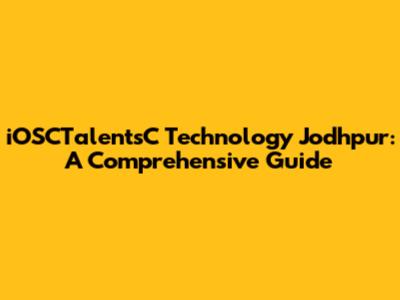 IOSCTalentsC Technology In Jodhpur: A Comprehensive Guide