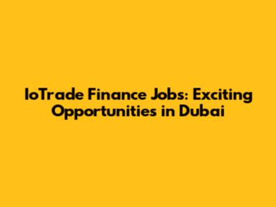 IoTrade Finance Jobs: Exciting Opportunities In Dubai