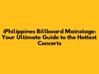 IPhilippines Billboard Mainstage: Your Guide To The Hottest Concerts