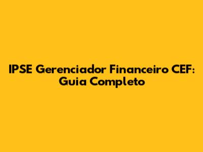 IPSE Gerenciador Financeiro CEF: Guia Completo