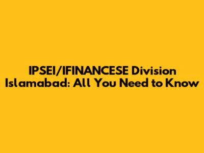 IPSEI/IFINANCESE Division Islamabad: All You Need To Know