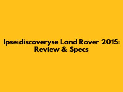 The Ipseidiscoveryse Land Rover 2015 is a versatile and capable SUV that offers a lot to potential buyers. While it has some drawbacks, its strengths make it a compelling option for those looking for a vehicle that can handle both everyday driving and off-road adventures. Just remember to do your homework before making a purchase!
