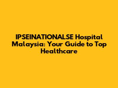 IPSEINATIONALSE Hospital Malaysia: Your Guide To Top Healthcare