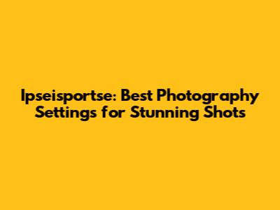 Ipseisportse: Best Photography Settings For Stunning Shots