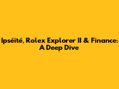 Ipséité, Rolex Explorer II & Finance: A Deep Dive